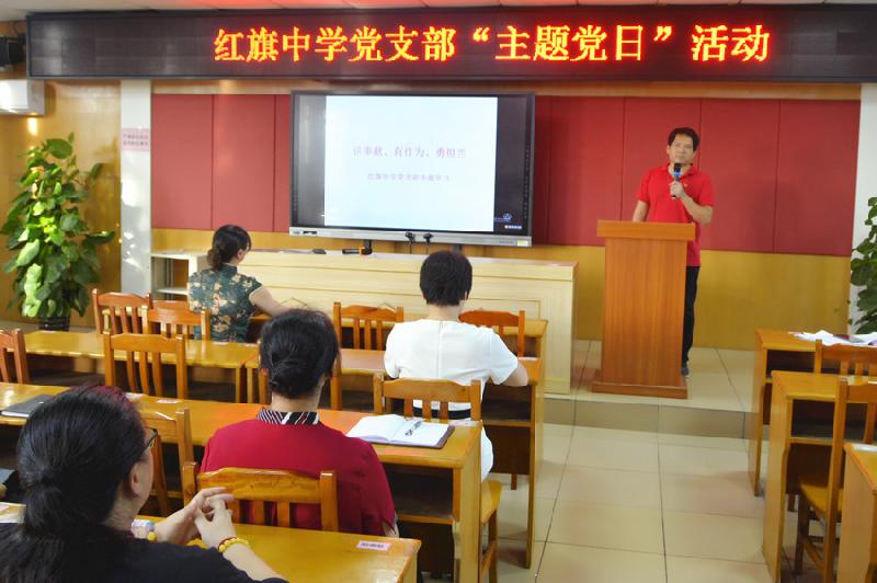 活動(dòng)在雄壯的國(guó)歌聲中拉開了序幕。隨后,紅旗中學(xué)黨支部書記陳亞玲同志帶領(lǐng)支部全體黨員重溫入黨誓詞,感悟黨的使命,進(jìn)一步強(qiáng)化初心和責(zé)任擔(dān)當(dāng)。首先表彰了2020年上半年在教育教學(xué)、創(chuàng)先爭(zhēng)優(yōu)、防疫抗疫工作中表現(xiàn)突出的黨員干部,并進(jìn)行了現(xiàn)場(chǎng)頒獎(jiǎng)。