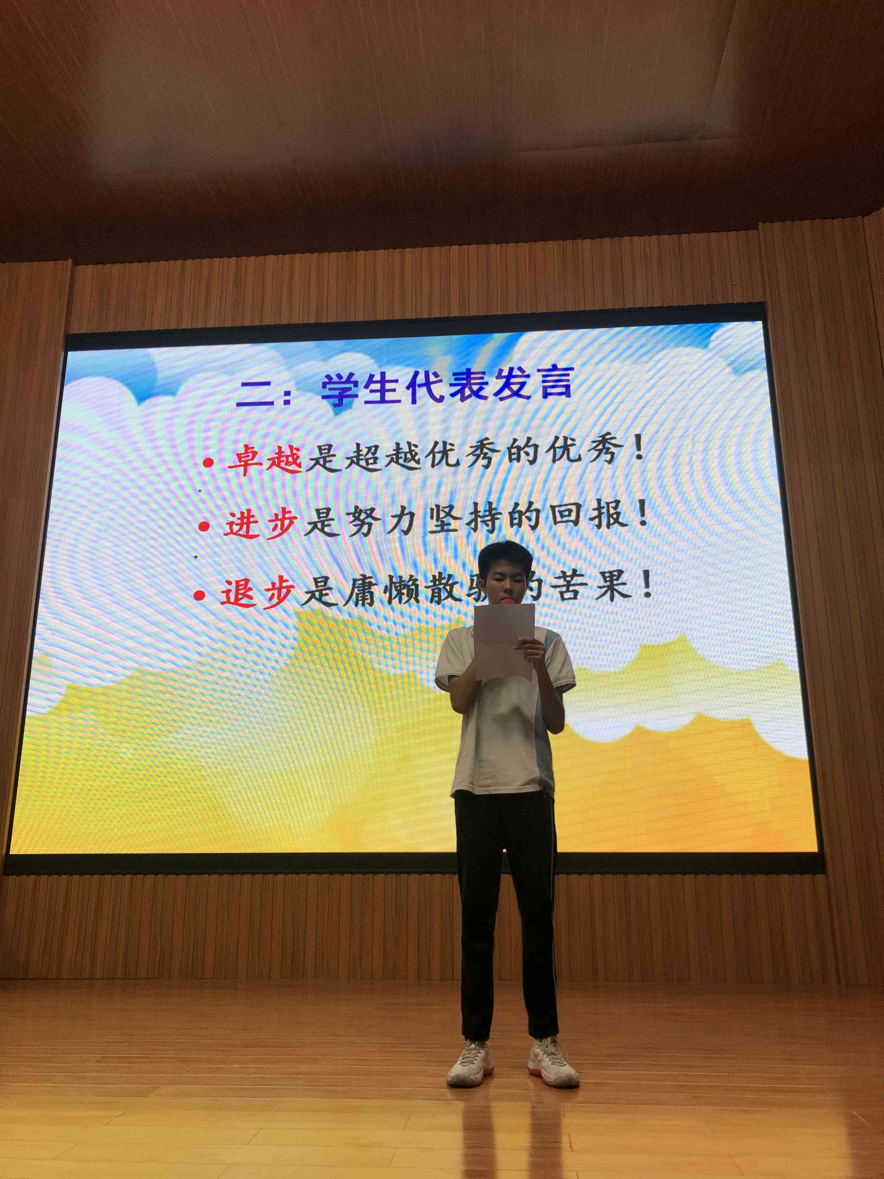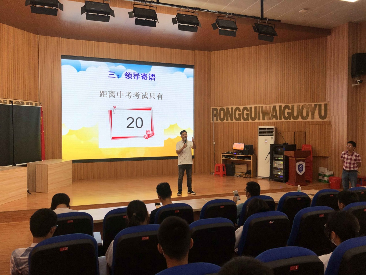 會(huì)議開(kāi)始由學(xué)生代表發(fā)言,分享他們的學(xué)習(xí)經(jīng)驗(yàn),并送上他們的中考祝福,寄語(yǔ)容外學(xué)子必定旗開(kāi)得勝,馬到功成!