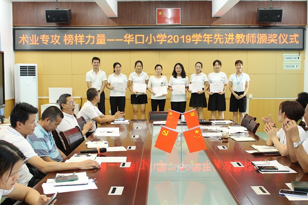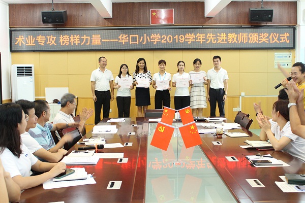 接下來,由教務處彭主任宣讀各科優(yōu)秀獲獎教師的名單,舉辦了一場隆重的頒獎儀式。感謝他們?yōu)槿A口小學作出的巨大貢獻。作為優(yōu)秀楷模,他們是全體教師學習的好榜樣。希望所有教師都能在教書育人的道路上闖出一番新天地。