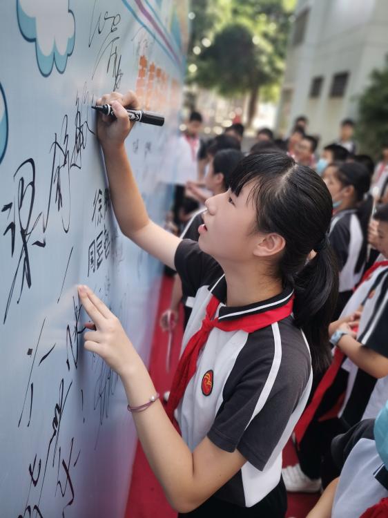 最后,同學(xué)們在簽名墻上簽上自己的名字,攜著回憶,帶著感恩,懷著理想,即將翻開他們?nèi)松鷯湫碌囊豁摗?/p>