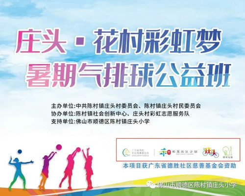 為了豐富學(xué)生的暑假生活,進(jìn)一步推廣氣排球運(yùn)動(dòng)項(xiàng)目在學(xué)校的發(fā)展,陳村鎮(zhèn)莊頭小學(xué)聯(lián)合莊頭村委會(huì)、陳村社創(chuàng)中心、莊頭彩虹志愿者服務(wù)隊(duì)舉辦了“莊頭?花村彩虹夢(mèng)――暑期氣排球公益班”,培訓(xùn)對(duì)象主要是面向莊小學(xué)子以及莊頭村的孩童。活動(dòng)的舉辦得到了學(xué)校家長以及莊頭村民的大力支持,紛紛踴躍報(bào)名,公益班的招生通知發(fā)布后,很快就招滿了名額。