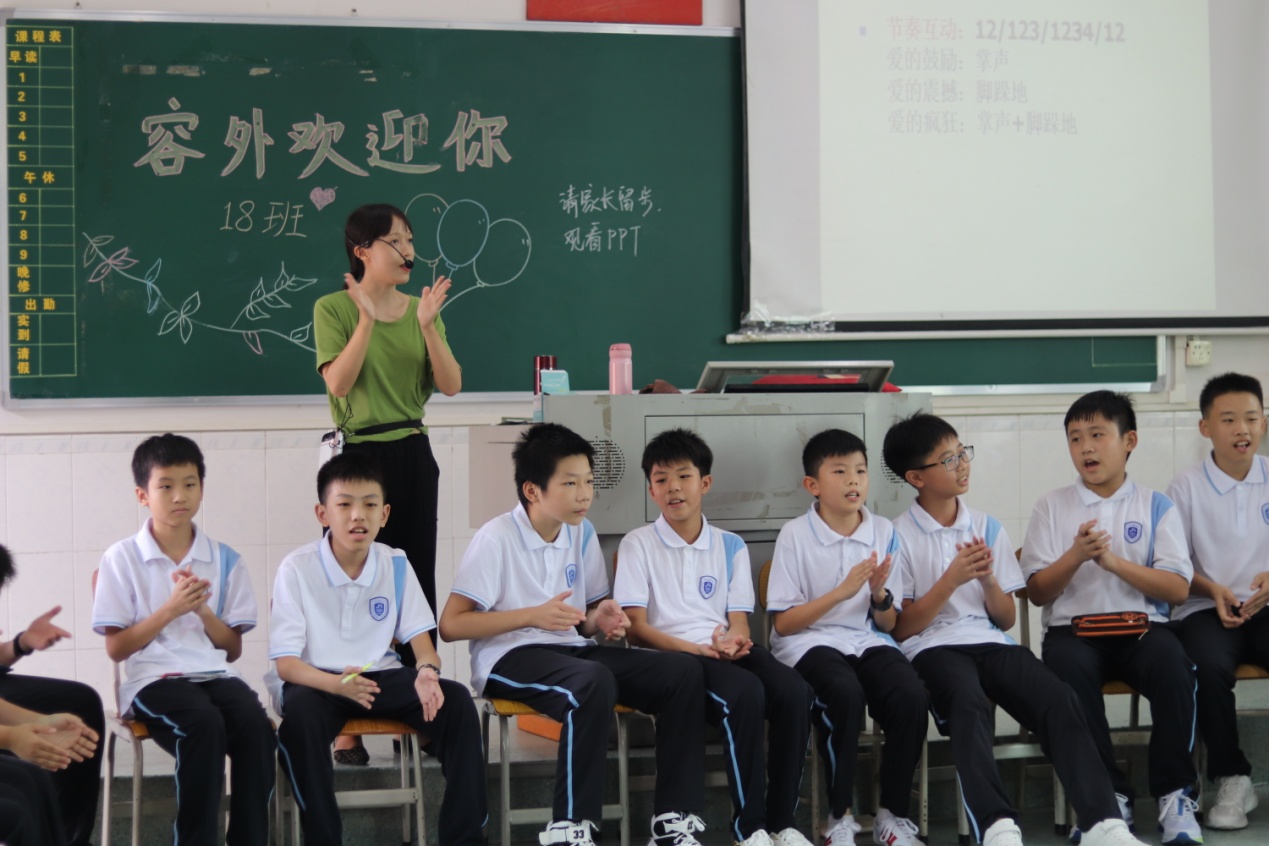 同學(xué)們學(xué)會(huì)了用整齊劃一的掌聲表達(dá)“愛的鼓勵(lì)”,與此同時(shí),各班還制定了團(tuán)體契約,為形成一個(gè)彼此接納、安全、關(guān)懷、支持、親切溫暖的大家庭而努力。