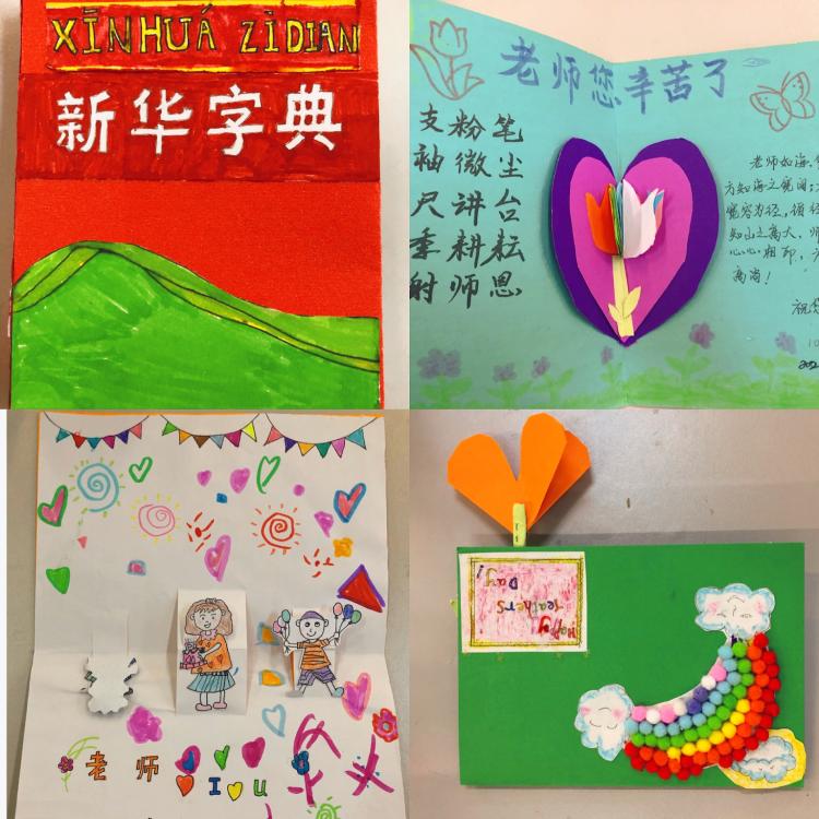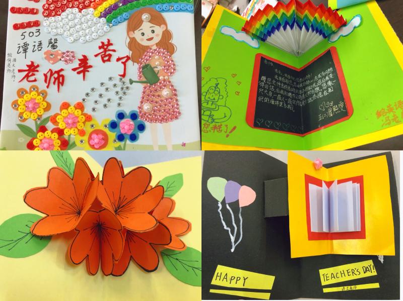 “張張賀卡傳真情,句句祝福暖師心”,活動(dòng)的最后,各年級(jí)的優(yōu)秀賀卡制作者到舞臺(tái)上展示他們的精美賀卡。他們利用周末親手制作,花式多樣,極具創(chuàng)造力,小小的賀卡附上了他們濃濃的謝意,并在這個(gè)特殊的節(jié)日送給了自己喜歡的老師們。