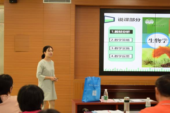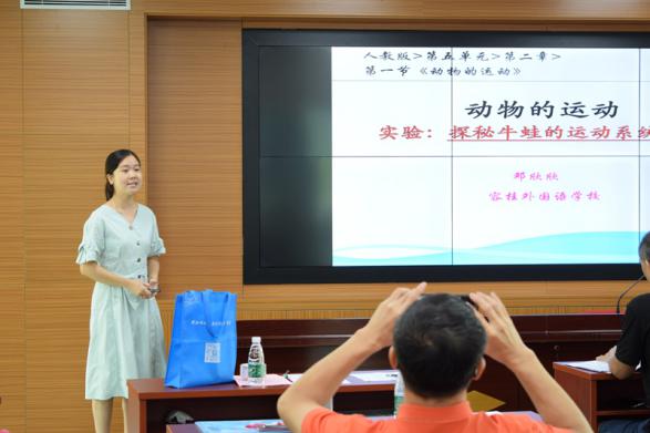 來自容桂外國語學(xué)校的鄧欣欣老師,說課題目為八年級上冊的《探秘牛蛙的運動系統(tǒng)的組成》,說課過程充滿激情,通過創(chuàng)設(shè)多個教學(xué)情境和豐富多彩的活動,激發(fā)學(xué)生的探究欲望。