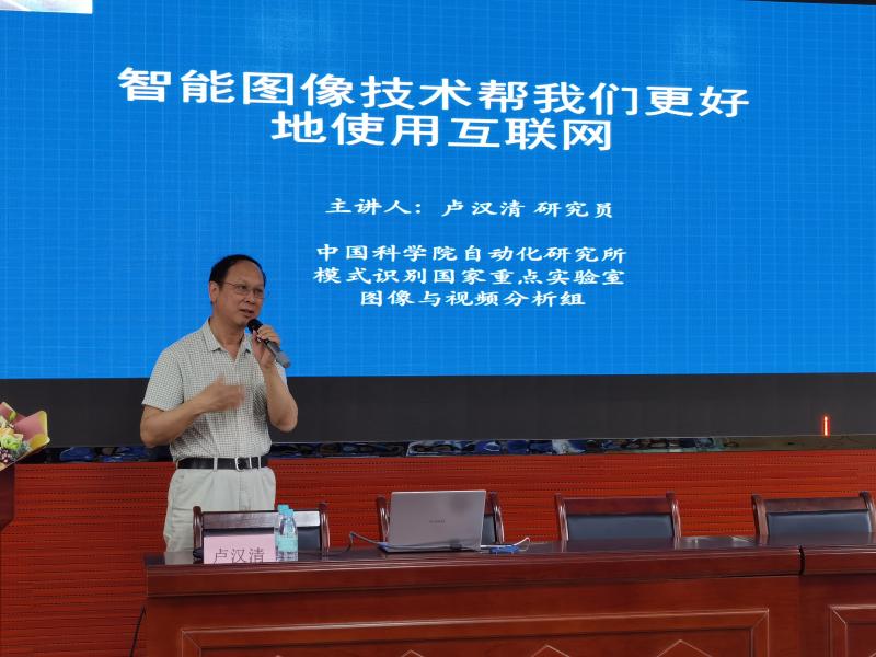 此次活動有幸邀請到中國科學院自動化研究所研究員,中國科學院大學人工智能學院盧漢清教授蒞臨演講。盧漢清教授就主題為《智能圖像技術幫助我們更好地使用互聯(lián)網(wǎng)》,為容里中學的師生們開展了一場別開生面的科普教育活動。