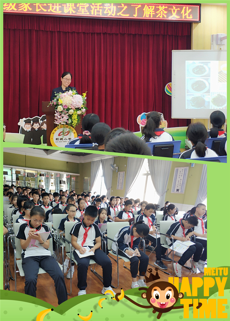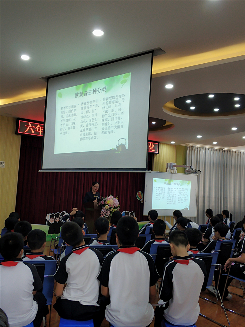 在這秋風(fēng)送爽,丹桂飄香的日子里,我校邀請了六年級家長代表廖碧華女士,為我們的孩子上一節(jié)專業(yè)的茶文化課。 廖碧華女士曾任環(huán)城小學(xué)義工隊長,她是福建人,從小就與茶結(jié)下了不解之緣,因而我們特意邀請她過來為我們上一節(jié)專業(yè)的茶文化課。廖女士準(zhǔn)備很充分,做了精美豐富的PPT,從茶的種類、茶的功效、茶葉名字的由來(背后都有吸引人的故事)以及如何沖泡各種的茶展開介紹。廖女士從各個方面和我們深入探討茶文化,還帶來了精彩的茶文化詩篇。廖碧華女士圖文并茂,語言精準(zhǔn)簡練為孩子授課,她還帶來各種茶葉樣本,讓孩子認(rèn)識茶葉,把茶豐富的文化內(nèi)涵呈現(xiàn)給大家,讓我們對茶有了深入全面的了解,真是收益匪淺。 讓家長走進課堂,讓學(xué)生的視野更開闊,讓我們的學(xué)習(xí)內(nèi)容更豐富,這樣的形式是值得推廣的。感謝廖碧華為我們做精心的準(zhǔn)備,呈現(xiàn)一節(jié)精致豐富的專業(yè)課。 知識來源于生活又高于生活,學(xué)習(xí)就是為了更好地生活。讓我們的孩子都走進生活好好學(xué)習(xí),提升生活品味,讓生活更美好!