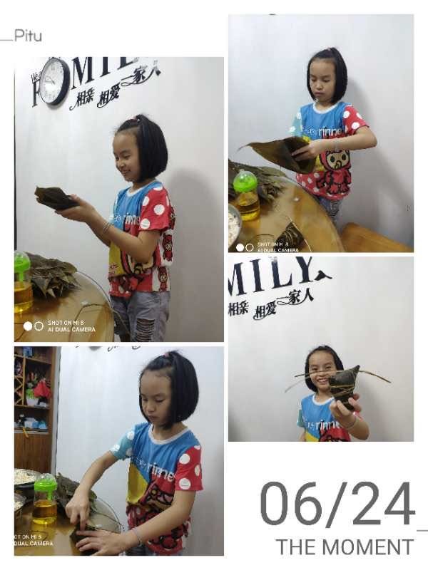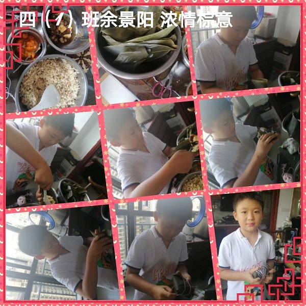 四1中隊余景陽參與學(xué)校端午節(jié)系列活動――包粽子