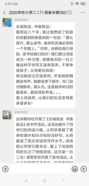 各班家長(zhǎng)們也在線上進(jìn)行讀書節(jié)互動(dòng)