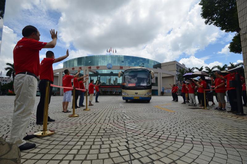 高二的學(xué)弟學(xué)妹們也高喊口號(hào),為學(xué)長(zhǎng)助威!高三出征,馬到成功!