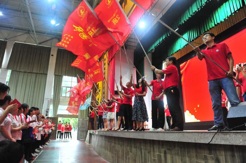 13個(gè)班同時(shí)揮舞起班旗,士氣高漲,壯志壯行!