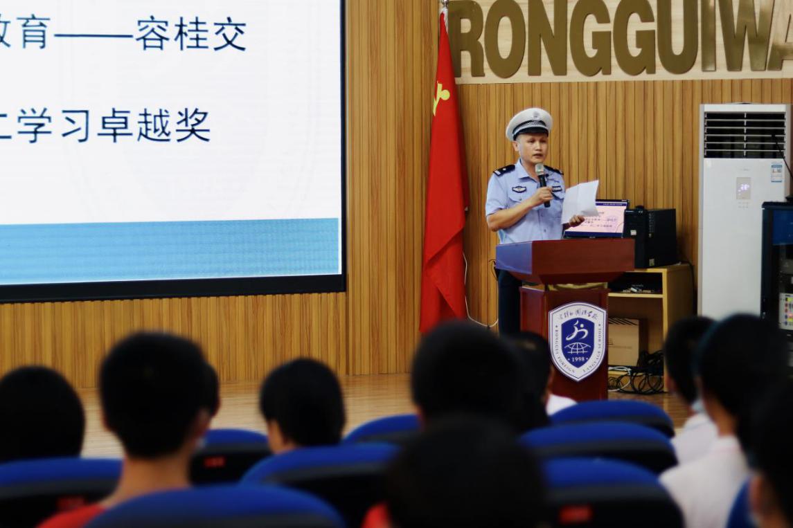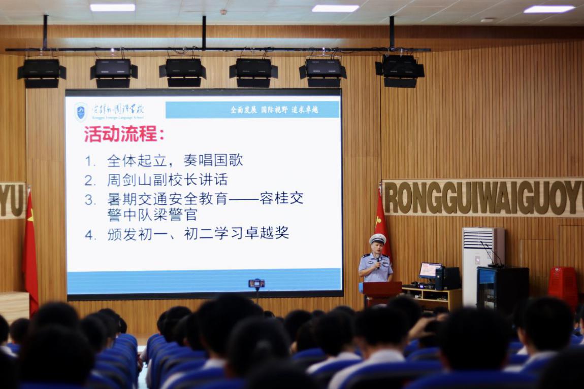 暑假來臨,安全教育不容忽視。容桂交警中隊(duì)梁警官為同學(xué)們進(jìn)行暑期交通安全教育指導(dǎo),他強(qiáng)調(diào)了四項(xiàng)準(zhǔn)則:“帶”――戴好安全帽,系好安全帶。“守”――遵守交通規(guī)則。“勸”――勸告親人切勿酒后駕駛?!疤А报D―不做低頭一族。期望同學(xué)們自覺遵守交通規(guī)則,樹立安全意識(shí),真正做到“快樂暑假,安全同行。”