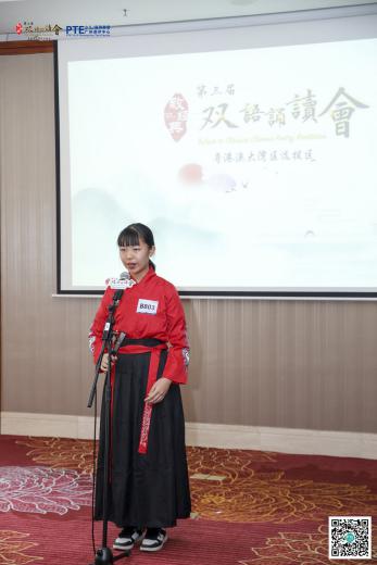 陳沂靜同學(xué)以其出色的中英朗誦表現(xiàn)、優(yōu)雅的葫蘆絲表演加上從容淡定且穩(wěn)健的臺風(fēng),贏得了評委的一致好評。
