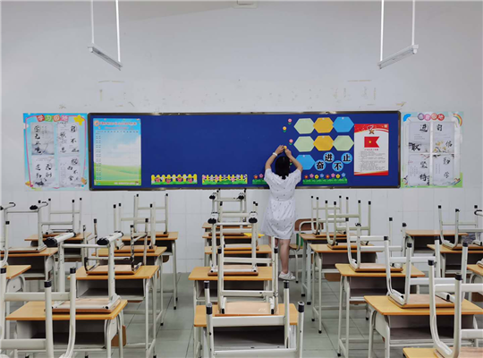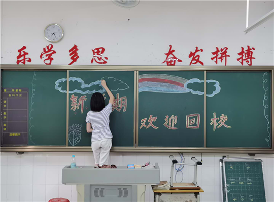 新學(xué)期 新環(huán)境 新希望 老師正在布置精美的黑板報(bào)迎接同學(xué)們回校