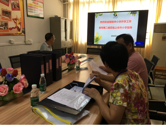 2020年8月28日上午,容桂街道開學督導核驗工作第二小組陳成德校長,蒞臨容桂上佳市小學進行開學前督導檢查。劉厚明校長及行政陪同檢查。