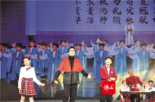 珠江商報(bào)訊 記者呂紅紅報(bào)道:12月20日晚,第五屆中國詩詞春晚在廣西賀州文化藝術(shù)中心錄播,現(xiàn)場一片喜慶歡騰。來自全國的21個(gè)節(jié)目登臺亮相,大咖云集,精彩紛呈,其中,由順德區(qū)本原小學(xué)選送的情景歌曲《聲律啟蒙》,贏得了陣陣掌聲,為晚會注入了來自校園的別樣青春與活力。