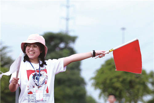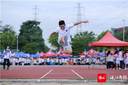 順德一中實驗學校第十六屆田徑運動場上,健兒們?nèi)σ愿啊⒘幧嫌?,憑毅力實現(xiàn)了一次次突破,在競技中完成了一次次傳遞的合作。除了奮力追趕的同學們,校園內(nèi)還有一道道迷人的幕后風景線。志愿者們堅守在起點與終點,熱情服務,確保校運會安全有序地進行;小記者們穿梭在各個比賽場地,用紙筆與光影記錄著每一個精彩瞬間;播音員們用話筒傳遞著一聲聲滿滿的正能量……