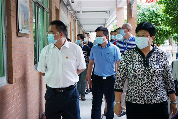7月3日下午,順德區(qū)副區(qū)長、容桂街道黨工委書記劉國興、容桂街道黨工委副書記、辦事處主任歐勝軍、容桂街道黨工委委員、教育局局長歐陽雪喬聯(lián)同相關(guān)職能部門工作人員來到容山中學(xué)考點開展高考前巡查工作。容山中學(xué)校長、考點主考區(qū)淑玲及相關(guān)行政陪同領(lǐng)導(dǎo)及職能部門負責人到校園相關(guān)高考功能場室進行巡視。