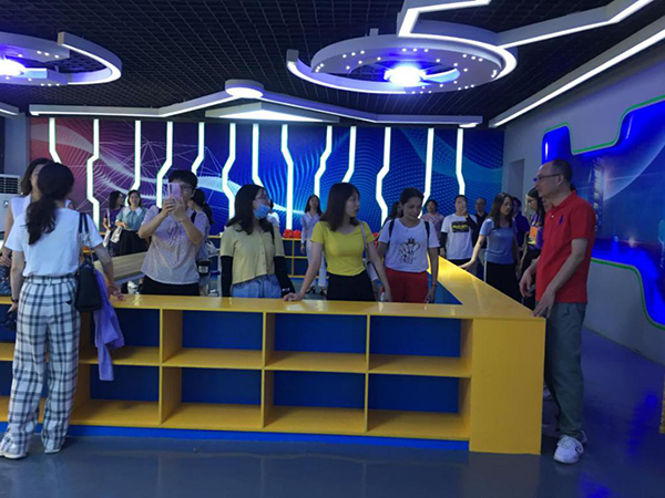 其次,一行人參觀了我校“創(chuàng)客城”,創(chuàng)客城科幻的設(shè)計,吸引了他們的目光,在參觀過程中,譚優(yōu)生校長結(jié)合學(xué)校實際,全面、細(xì)致地介紹了我?!皠?chuàng)客城”建設(shè)與開展活動的情況。來訪的教師對我?!案叽笊稀钡摹皠?chuàng)客城”所體現(xiàn)出來的“科創(chuàng)”文化元素給予了高度贊譽。