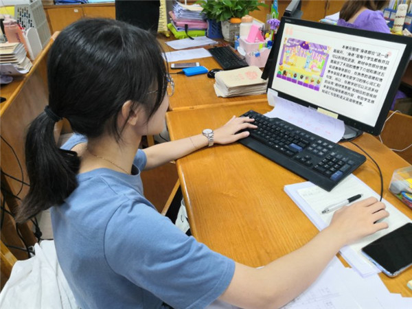六年級部分,仕版奮揚聶慧珊老師與培教小學吳燕玲老師對備課內(nèi)容進行熱烈討論。
