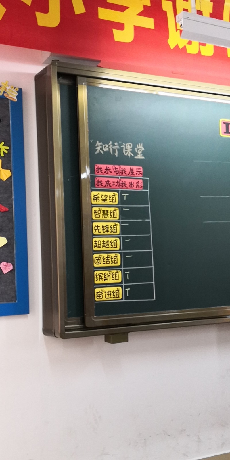 在新課伊始,謝老師根據(jù)班級學(xué)生的個別差異性,在班別設(shè)立了7個學(xué)習(xí)小組,每組約6-7人。并讓每個小組介紹自己獨具特色的組名以及別具一心口號,有“希望組”、“智慧組”、“先鋒組”、“超越組”、“團(tuán)結(jié)組”、“繽紛組”和“奮進(jìn)組”。