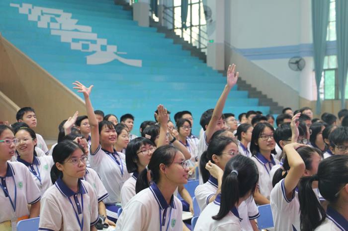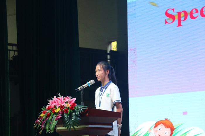 隨后,八年級9班周樂瑤同學(xué)作為英語特色班代表發(fā)言。她用流利的英語跟大家分享了自己學(xué)習(xí)英語經(jīng)歷和方法,感恩育賢提供的英語特色課程讓她的英語學(xué)習(xí)之路變得多姿多彩,同時(shí)她表示英語是接觸世界的一門工具,希望全體同學(xué)一起努力學(xué)好英語。
