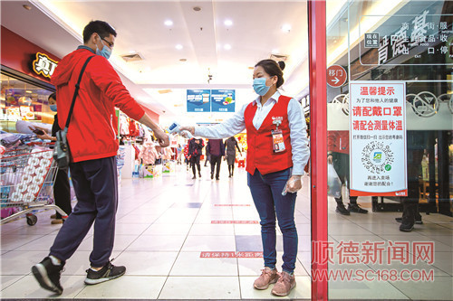 大良一商場工作人員正在為市民檢測體溫。/珠江商報記者林安迪攝