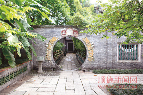有的洞門用色豐富、立體感強、中西合璧。如船廳旁邊的連廊洞門采用西洋羅馬柱式造型,歐式洞門的上方半圓拱形中,或用灰塑勾勒花鳥,或畫上傳統(tǒng)國畫,形成一道獨特的風(fēng)景線。